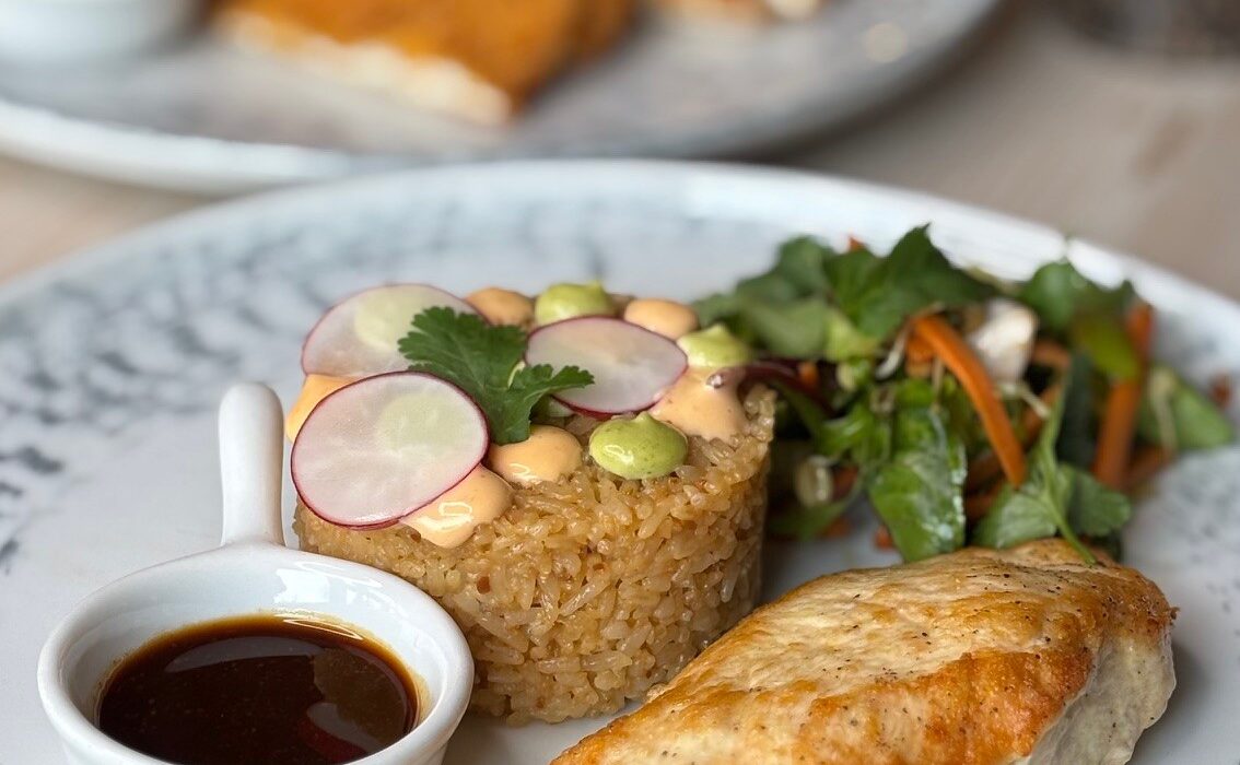 Marinovaný losos se salátkem s japonskou majonézou, medovo-hořčičný dressing s koprem