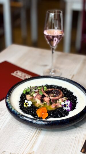 Sépiové risotto s chapadly kalamár, Beurre Blanc