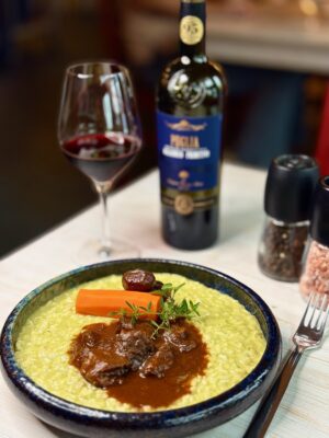 Jehněčí na víně a italské risotto s pestem z medvědího česneku